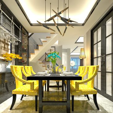 Cafe or high end dining furniture. Contrast colors are the key for individual items to stand out
