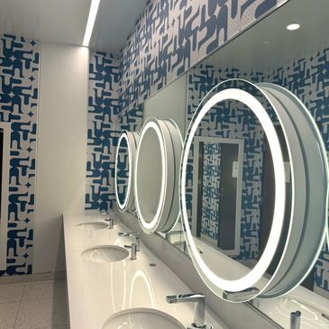 One of our most popular smart mirrors. This is our double illuminated wall mirror that can be customized for color tuning, dimming, with a remote on/off or hospitality suite on/off switch.