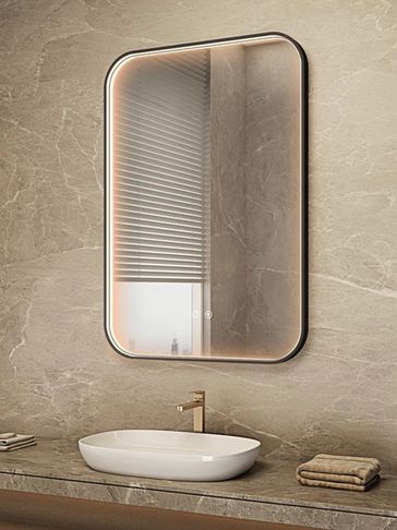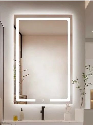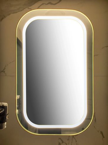 This mirror has a thin profile and is illuminated on the inside edge to give it a nice glow and practicality during dim lighting. The same is offered with wall illumination as well