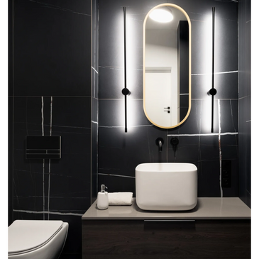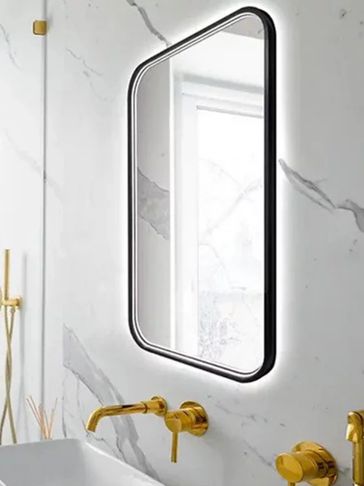 Sophisticated LED Mirror with a wide edge design that creates movement in a space. This mirror is an artistic statement