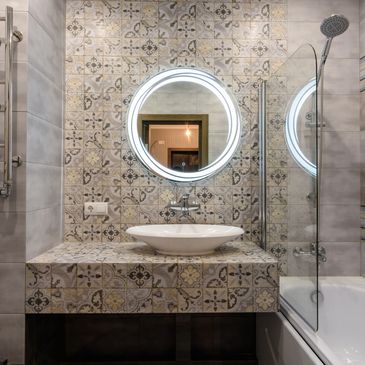 TV mirrors are fast becoming popular in executive suites. We offer a range of sizes and resolutions. These mirrors are anti fog with full functionality on the mirror or via a remote control from the comfort of your chair or bath tub